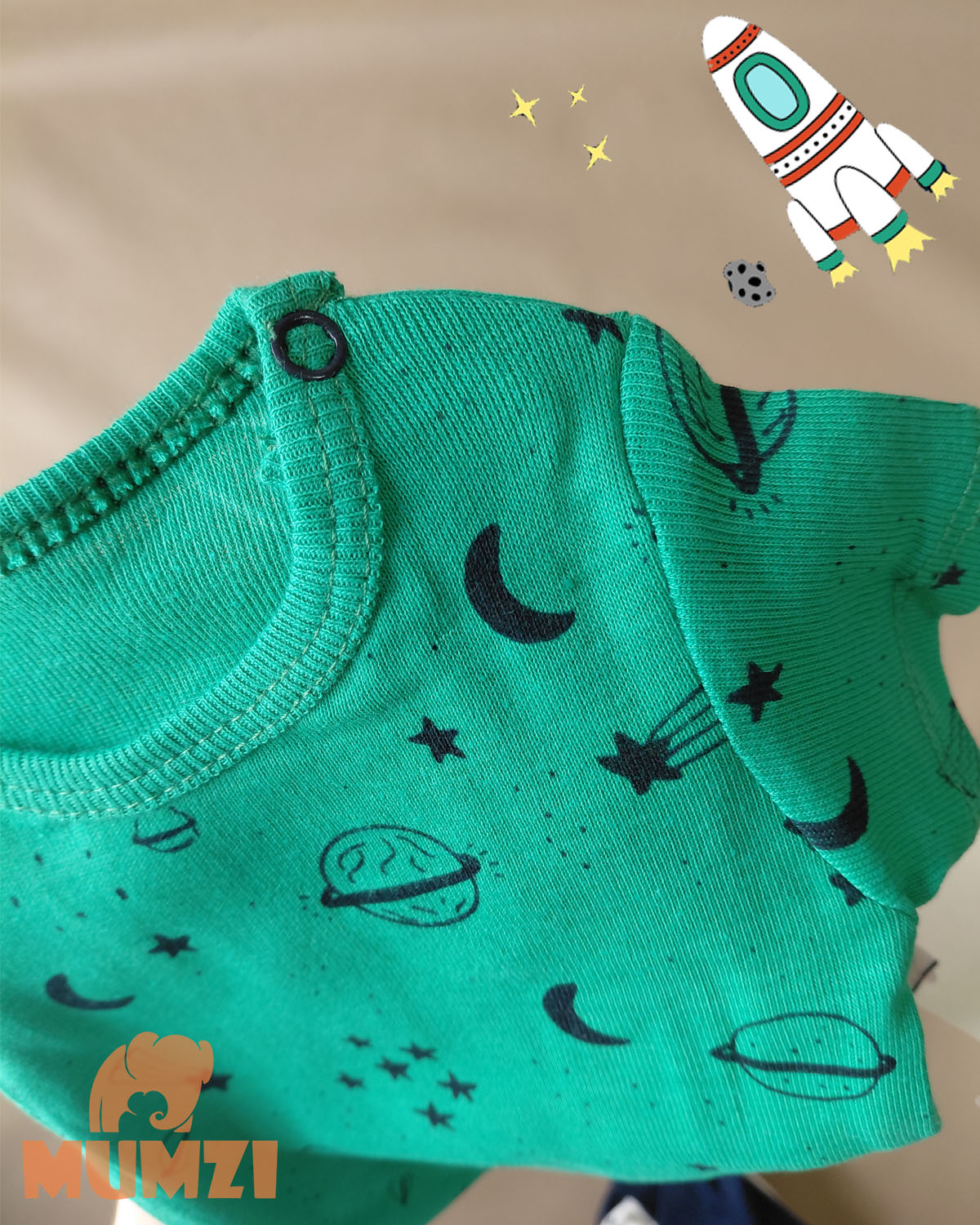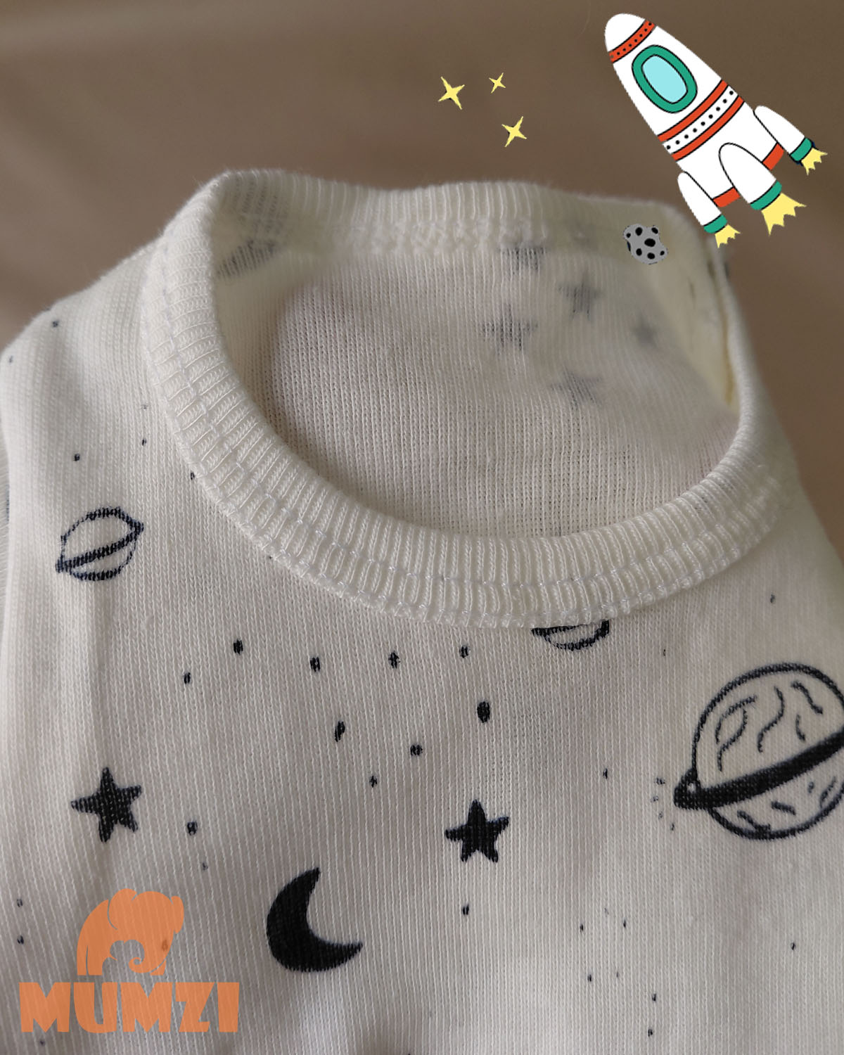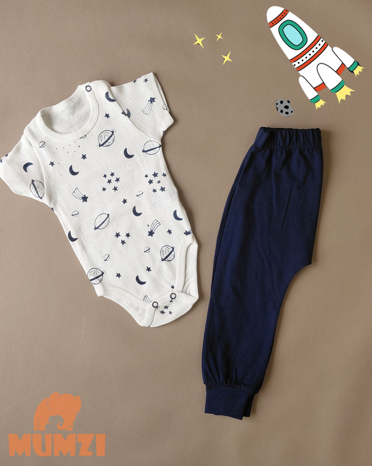 یک ست بادی زیردکمهدار + شلوار با چاپی که دنیای کودک را تا عمق کهکشان میبرد! 🚀🪐