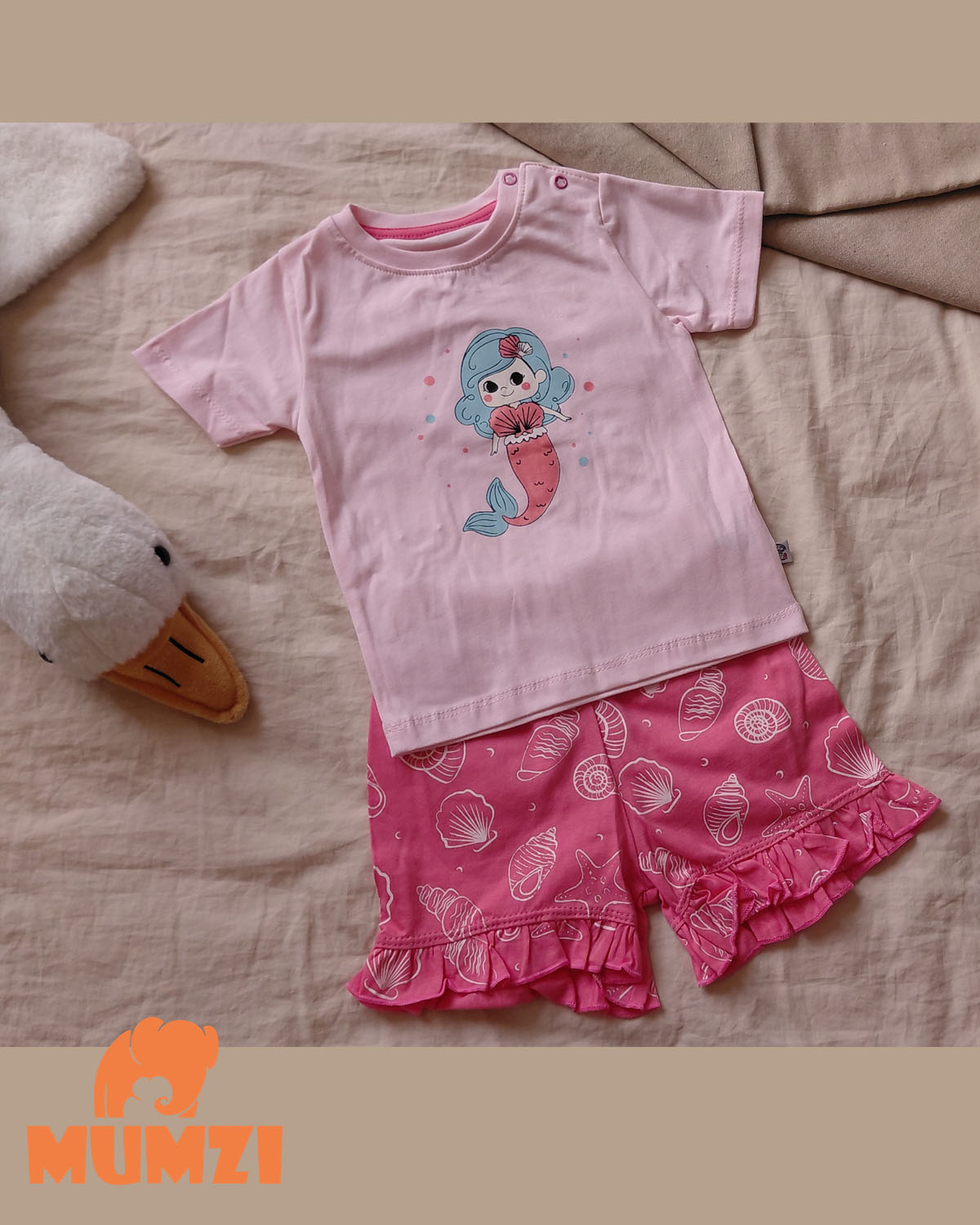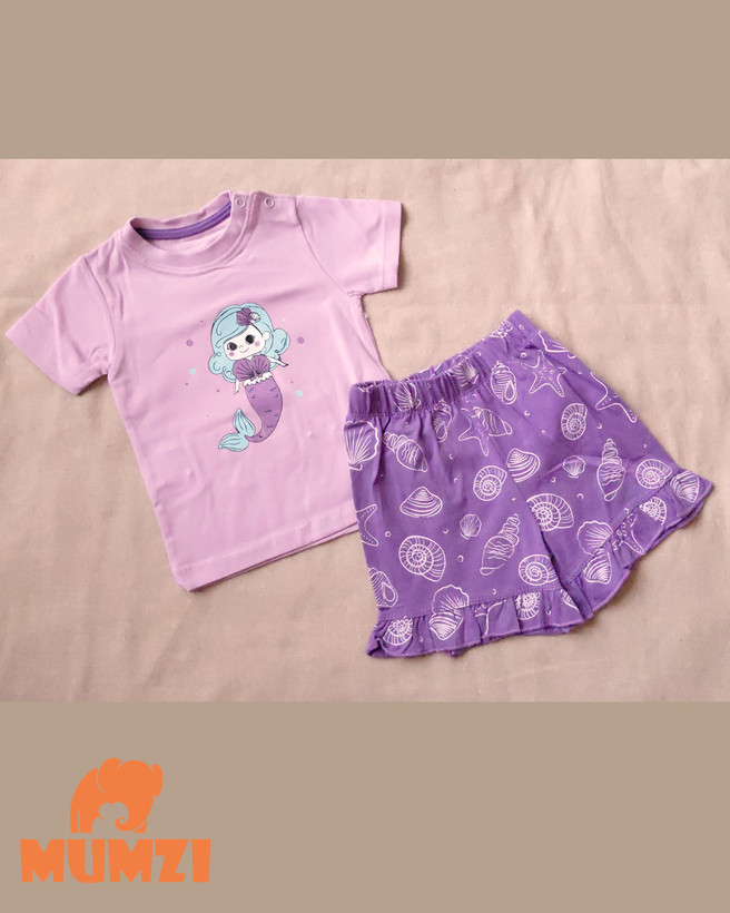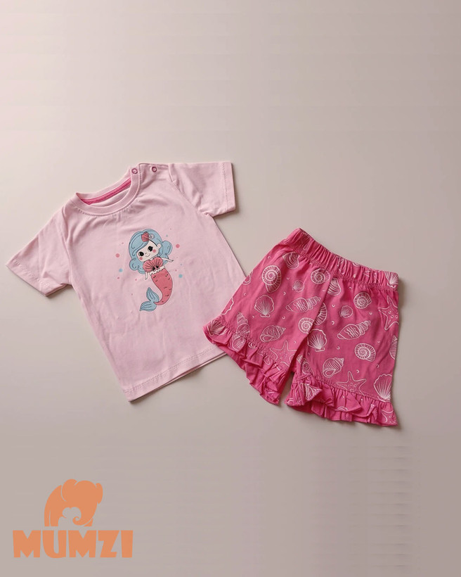 تیشرت شورتک دخترانه بچه گانه نخ پنبه اعلا طرح mermaid {سایزبندی 9 ماه تا ۳سال}