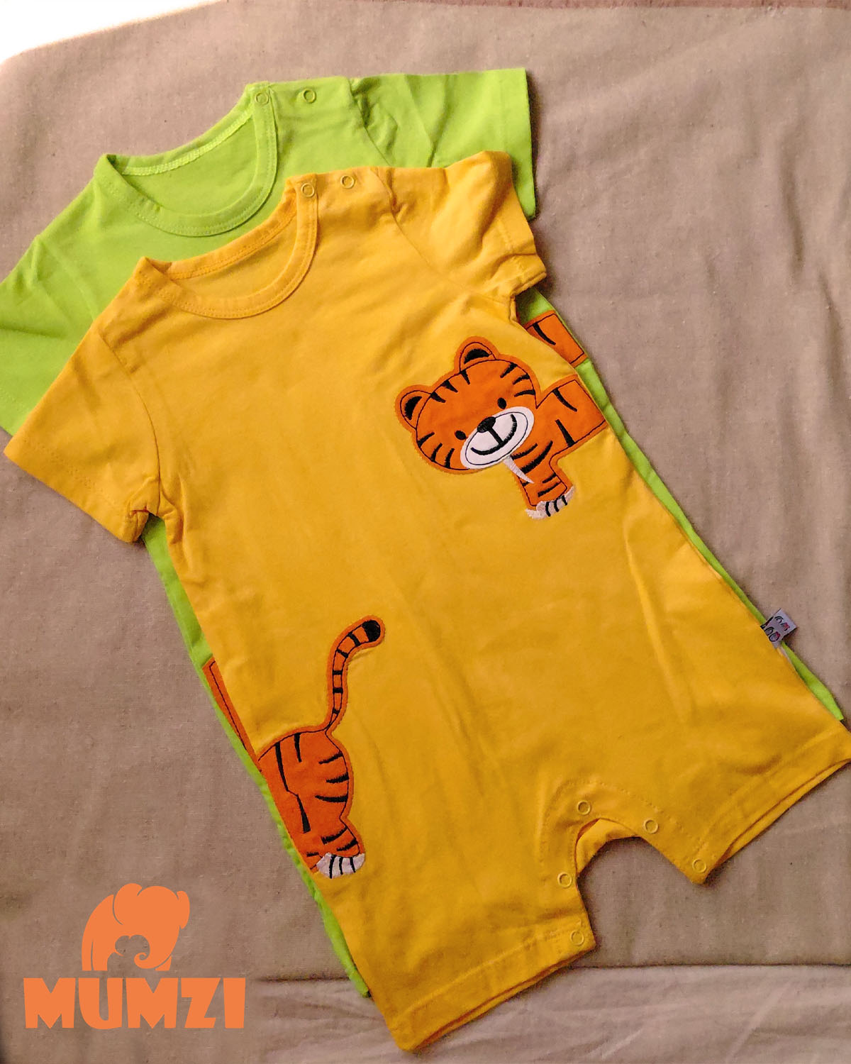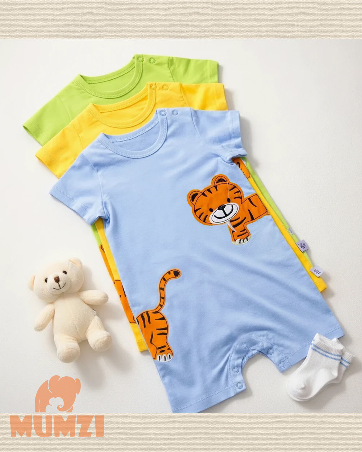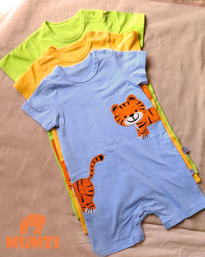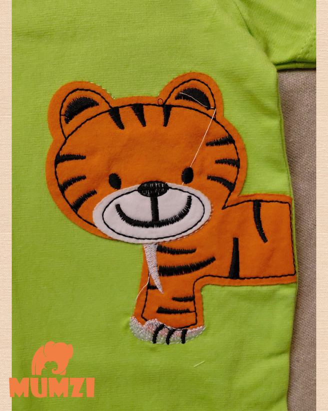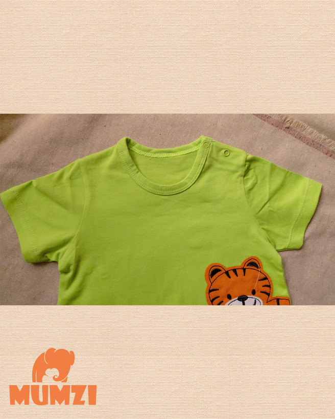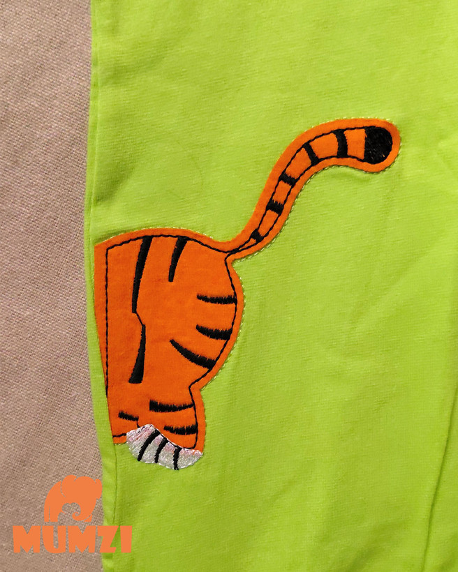 از نظر ظاهری، تکهدوزی طرح تایگر در قسمت جلوی لباس جلوهای شاد و کودکانه ایجاد کرده و باعث میشود این مدل برای استفاده روزمره، گردش یا مهمانیهای خانوادگی نیز مناسب باشد. ترکیب رنگهای آبی، زرد و سبز نیز انتخابهای متنوعی برای والدین فراهم میکند.